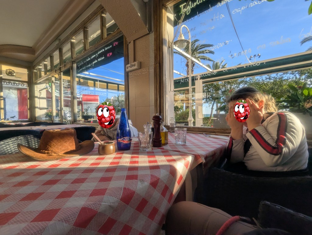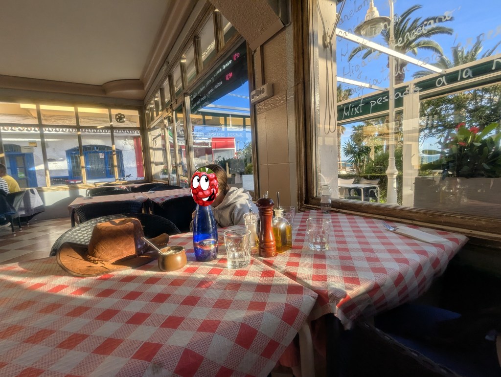 We at some Italian dinner in a German owned restaurant on the southern coast of Spain.