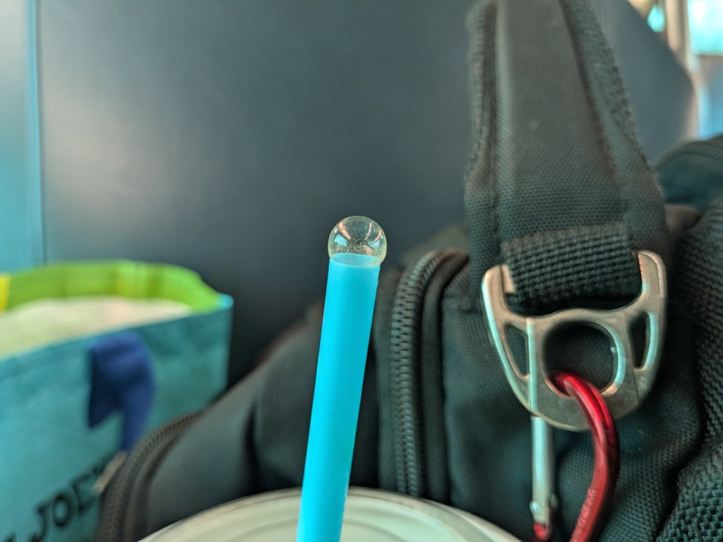 VI grabbed a drink from Tropical Smoothie, and Vered’s straw decided it needed blow a bubble.