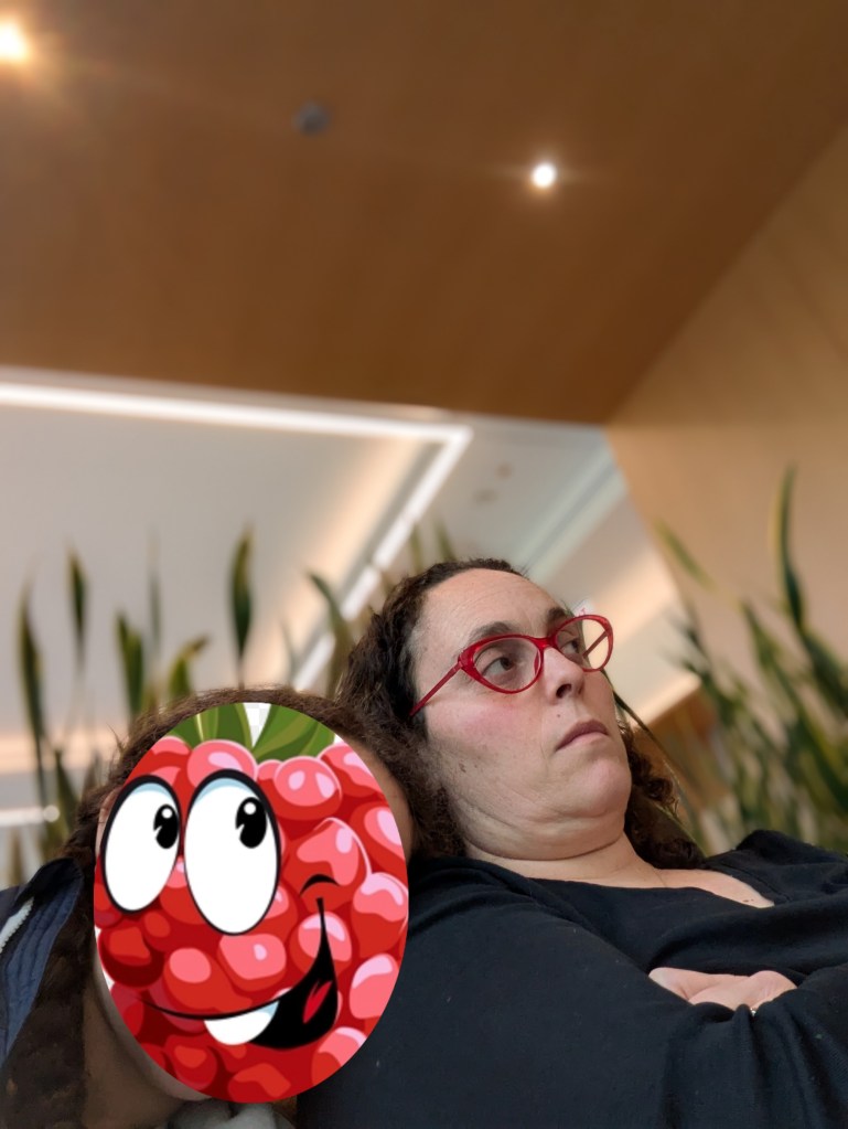 We had a rather uneventful flight, which we are not complaining about. Elyce watched 3 movies, Vered watched 4. We watched one or two of them “together” on our own seat back screens. However, Elyce fell asleep and Vered did not. The airplane food was actually edible and was enjoyed.