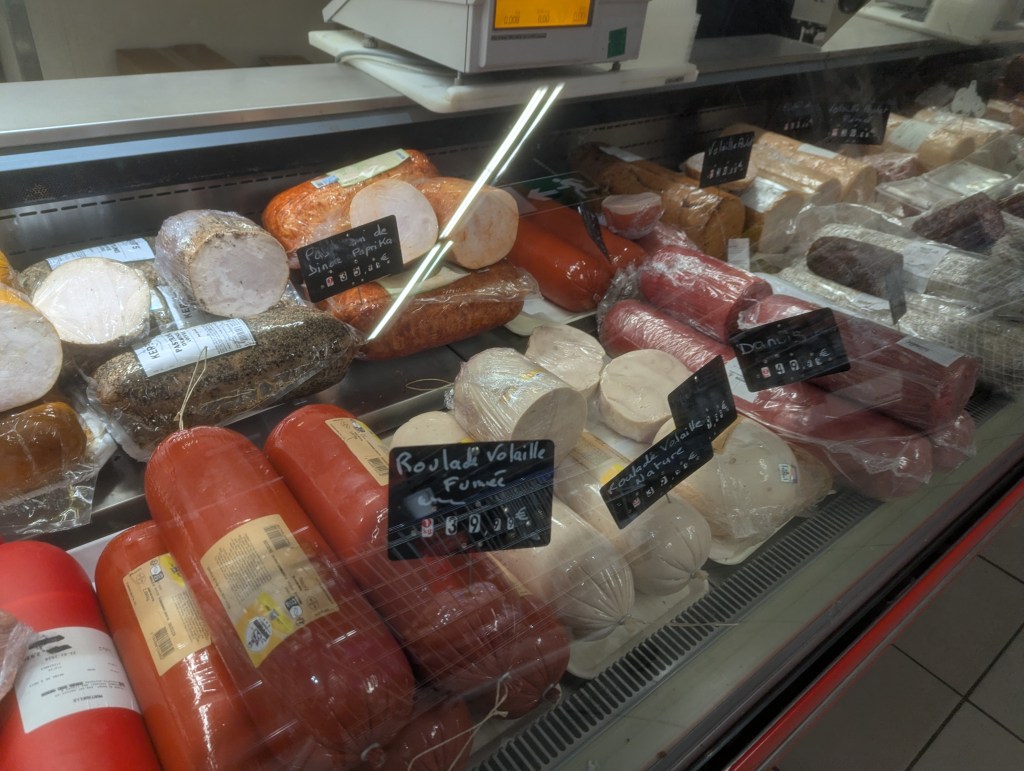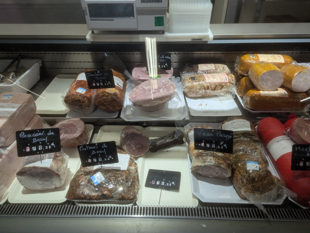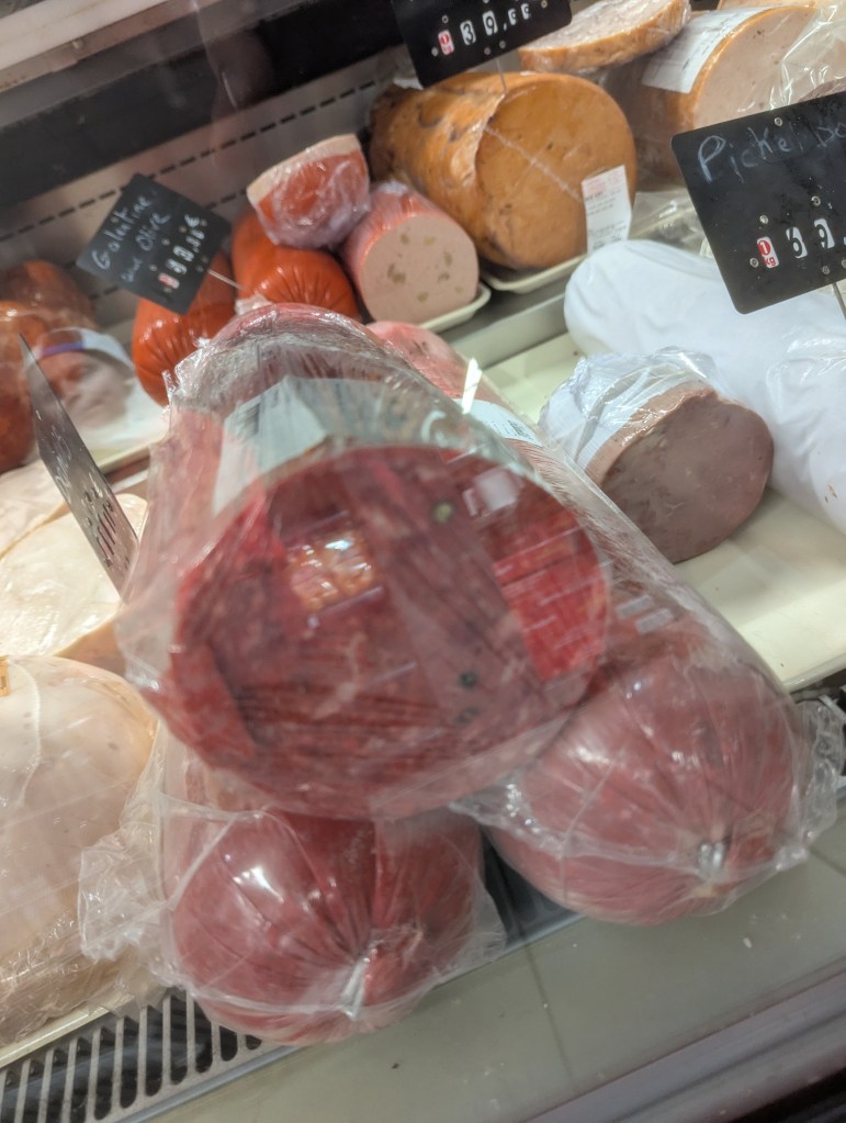 The meat here is fantastic! They even have a version like peperoni, and something else that’s really, really red. I think some of this actually comes in from Strasbourg, so that’ll be a town we visit another time.